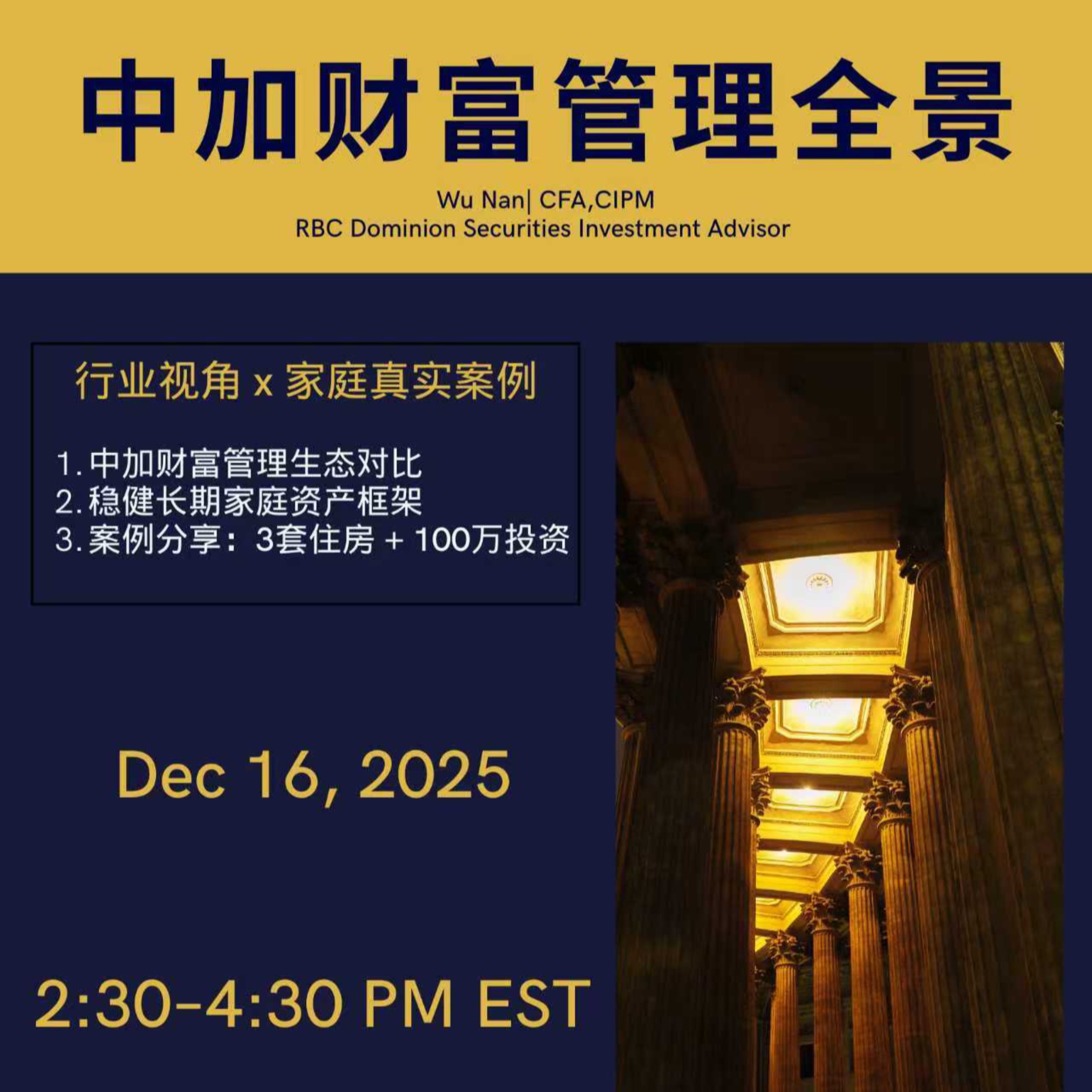 本次讲座将从中加两国的行业差异切入,以真实家庭的资产配置路径为蓝本,带你走进那些高净值家庭看得见、摸得着的决策现场。你将理解: