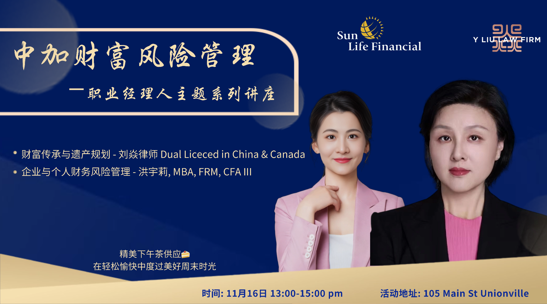 我们荣幸地宣布,一场专为职业经理人、企业家及高净值人士量身打造的财富管理盛会——“中加财富风险管理 - 职业经理人主题系列”即将隆重举行。本次活动旨在帮助与会者在全球经济变局中,有效识别并管理财富风险,实现资产的稳健增长与世代传承。